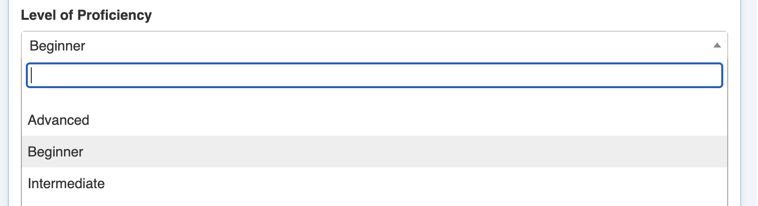 <figure><img src="https://3923904090-files.gitbook.io/~/files/v0/b/gitbook-x-prod.appspot.com/o/spaces%2FNy7IznbrPLUq6GJDDQDk%2Fuploads%2F51DuSkgEGWsEtHGEAxd1%2Fimage.png?alt=media&#x26;token=8be84a87-442d-493c-8701-7d9b00f445ae" alt="" width="375"><figcaption><p>Level of Proficiency setting</p></figcaption></figure>