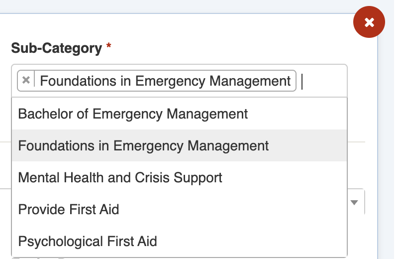 4. Set the **Sub-Category** using the search field. If the Category is Other, you'll be asked to enter a Category as text.