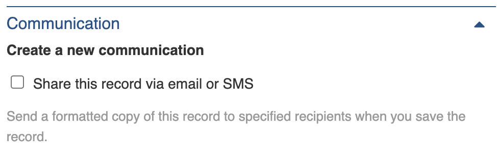 Communication Coordinators can tick the **Share this record via email or SMS** box to send it in a message.