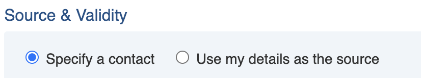 * **Use my details as the source** - if this is used, then your Contact record is attached to the Information