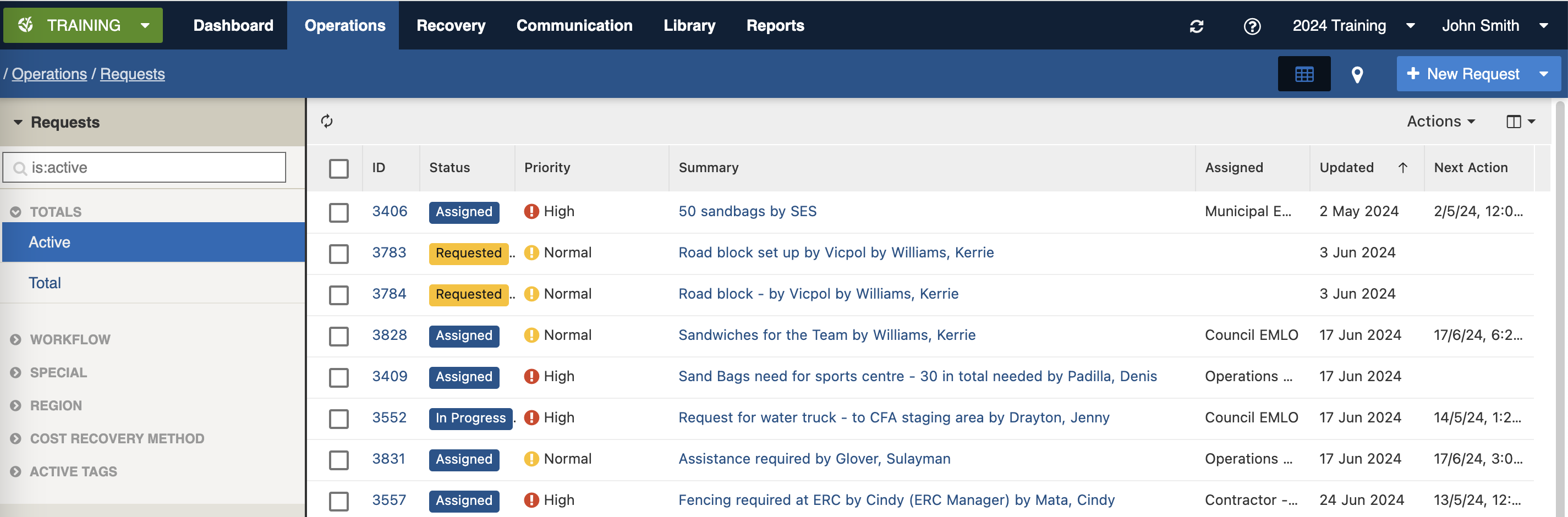 In an emergency context, "Request for sandbags" is an example of a request from the Emergency Coordination Centre that may have been requested by an Liaison Officer, and assigned to a depot for fulfilment.