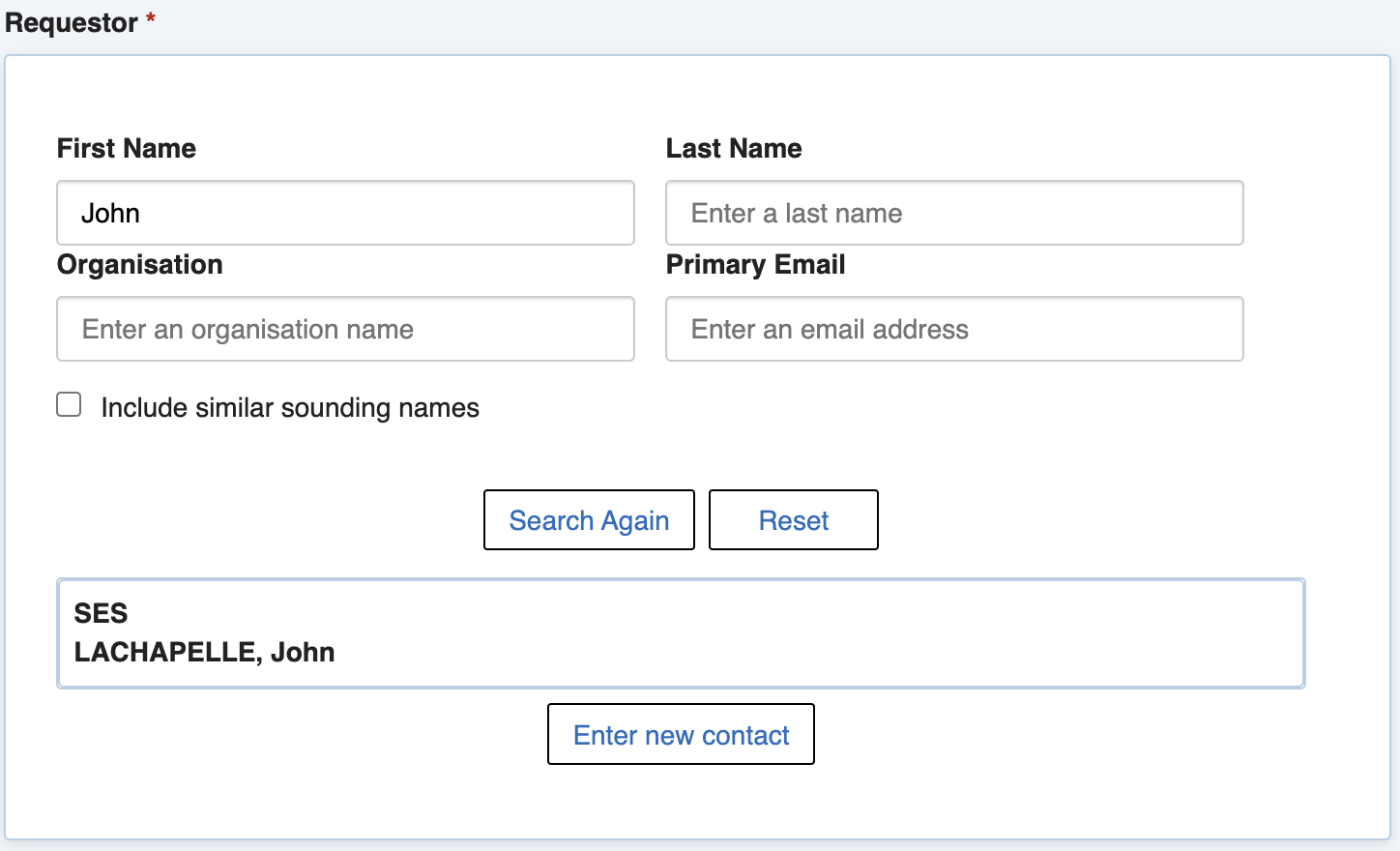 <figure><img src="https://3923904090-files.gitbook.io/~/files/v0/b/gitbook-x-prod.appspot.com/o/spaces%2FNy7IznbrPLUq6GJDDQDk%2Fuploads%2FOTmecUeafDmGRQRAO6fq%2Fimage.png?alt=media&#x26;token=d64ca296-25cc-4260-8684-b7b4418e8714" alt=""><figcaption><p>Requestor Search form example</p></figcaption></figure>