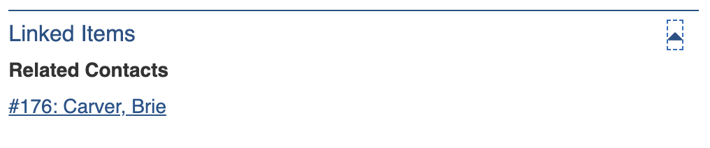 The Linked Items section contains links to any **Related Contacts**. Use these links to access the details for the contact.