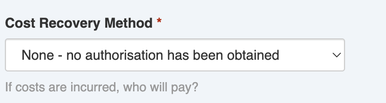 5. If there are likely costs involved and the requestor has agreed to pay costs, select the appropriate option. This will help in emergency cost recovery.\