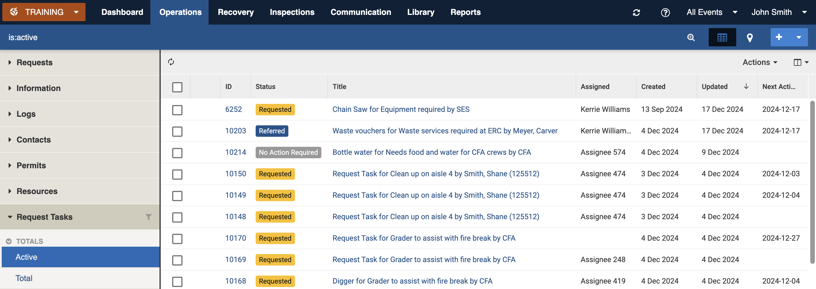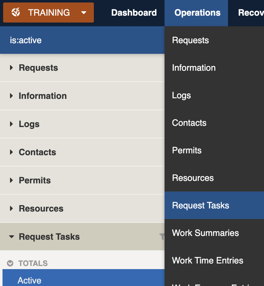 Request Tasks are used to record actionable items that can be added within a request for additional tracking of resources and costs. For example, a Request for a cleanup might call for a chainsaw, cutting down of trees, and volunteers. These would be individual request tasks and this register keeps track of their status, assignment and deployment of each of these.