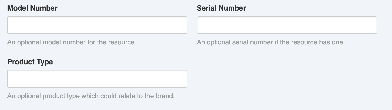 When you're working with equipment resources, you can include additional details on the model, serial and product type. This is also handy for finding the resources later as you can search by these fields to find an individual piece of equipment.