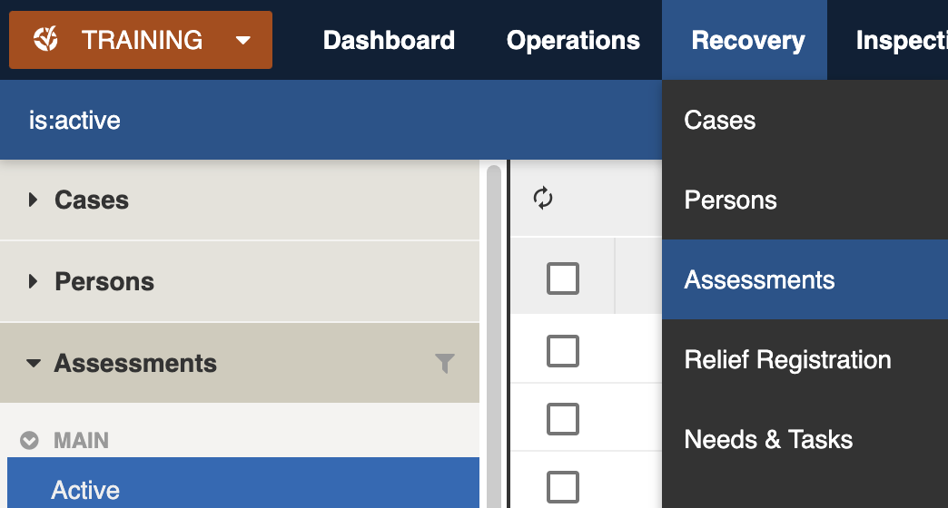 <figure><img src="https://3923904090-files.gitbook.io/~/files/v0/b/gitbook-x-prod.appspot.com/o/spaces%2FNy7IznbrPLUq6GJDDQDk%2Fuploads%2FDb9n0qU8V0HILVDiPdT8%2Fimage.png?alt=media&#x26;token=e03f52b4-499f-4074-b67a-6cb15a01b5b6" alt="" width="375"><figcaption><p>Location of the Assessments register in the Recovery module</p></figcaption></figure>