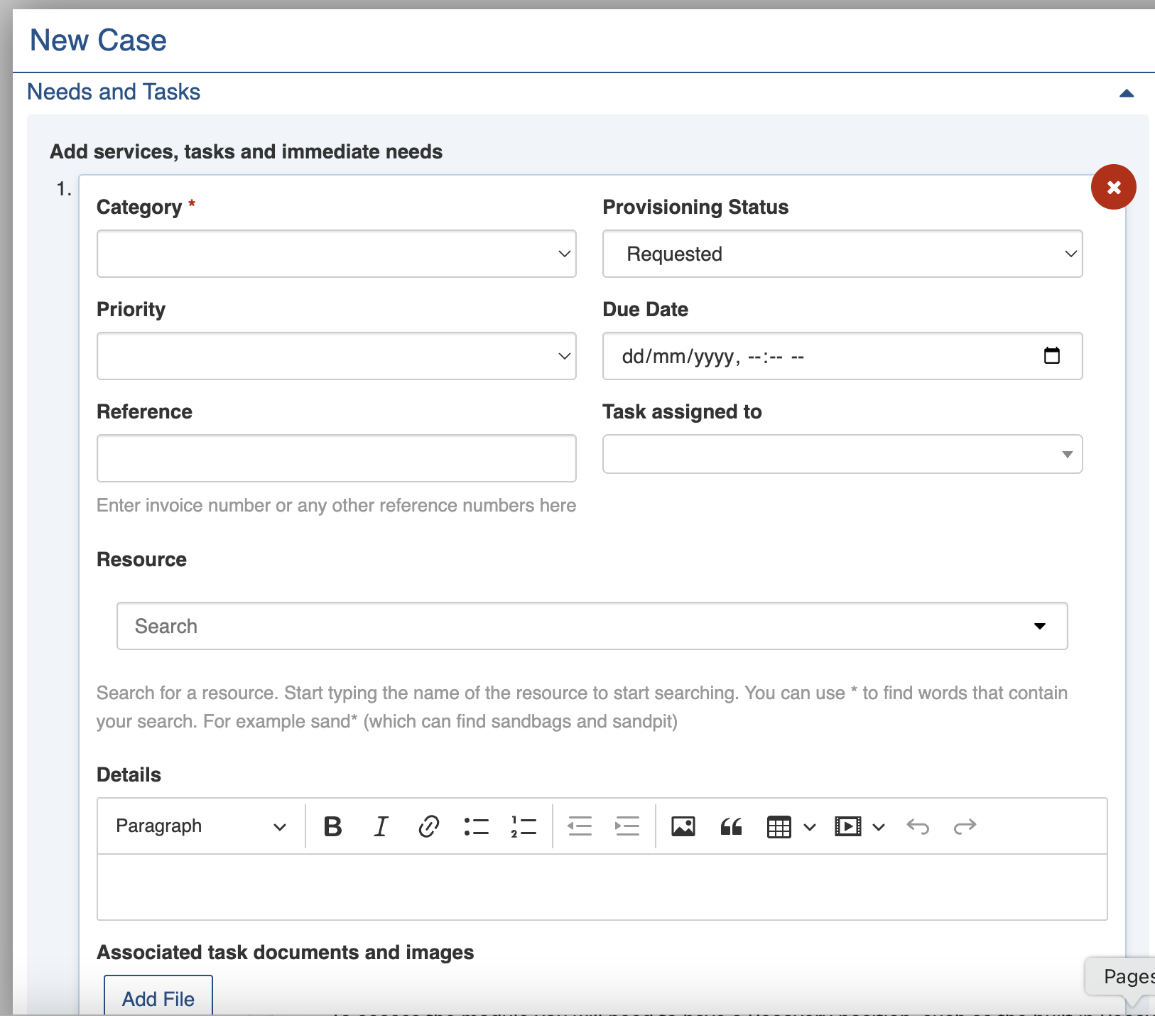 The Needs & Tasks register is used for recording services and tasks to track the immediate needs for which can be assigned to providers.