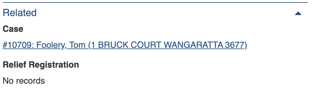 <figure><img src="https://3923904090-files.gitbook.io/~/files/v0/b/gitbook-x-prod.appspot.com/o/spaces%2FNy7IznbrPLUq6GJDDQDk%2Fuploads%2FQRdYOdklNPT8cHW3YyXO%2Fimage.png?alt=media&#x26;token=c5ef9140-42e7-4467-8193-23e9cfdbe502" alt="" width="375"><figcaption><p>Related section showing link to related Case.</p></figcaption></figure>