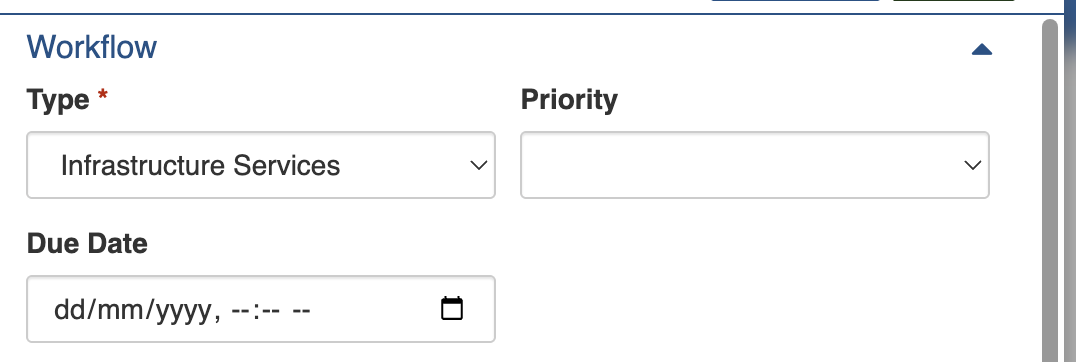 The Workflow section records additional information about the kind and importance of the Need/Task.