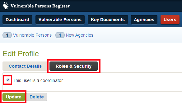 To make an Agency User that is not currently an Agency Coordinator an Agency Coordinator: