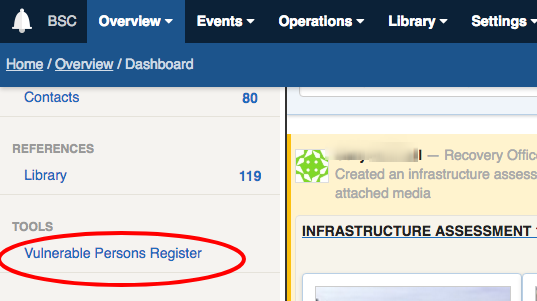 <figure><img src="https://3923904090-files.gitbook.io/~/files/v0/b/gitbook-x-prod.appspot.com/o/spaces%2FNy7IznbrPLUq6GJDDQDk%2Fuploads%2FjNXlLX2zdX0mZhbwkj2O%2Fimage.png?alt=media&#x26;token=e8f699f7-ff28-45b7-86cf-cc110faef806" alt=""><figcaption><p>Vulnerable Persons Register link in Crisisworks</p></figcaption></figure>